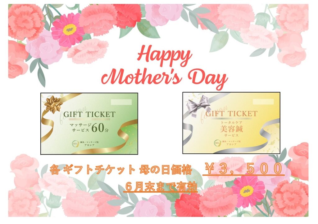 お母様や奥様に感謝の気持ちを伝える選択肢として、マッサージや美容鍼のギフトチケットはいかがでしょうか?